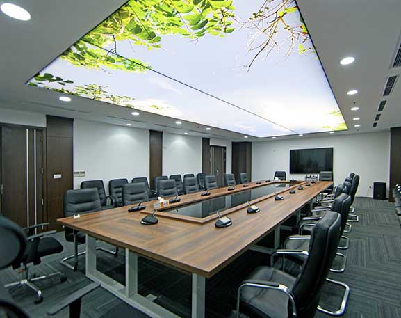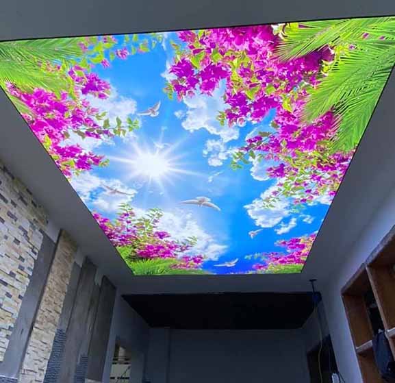 - Trần xuyên sáng ngày nay được nhiều khách hàng sử dụng phổ biến như: phòng họp, hội trường, phòng khách, trung tâm triễm lãm, nhà hàng…Nhờ ánh sáng được truyền qua bởi tấm màng bạt dẻo in UV giúp cho không gian trở nên sang trọng và ánh sáng rực rỡ hơn, phân tán đều khắp không gian nó hiện hữu.
