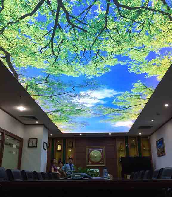 - Trần xuyên sáng ngày nay được nhiều khách hàng sử dụng phổ biến như: phòng họp, hội trường, phòng khách, trung tâm triễm lãm, nhà hàng…Nhờ ánh sáng được truyền qua bởi tấm màng bạt dẻo in UV giúp cho không gian trở nên sang trọng và ánh sáng rực rỡ hơn, phân tán đều khắp không gian nó hiện hữu.
